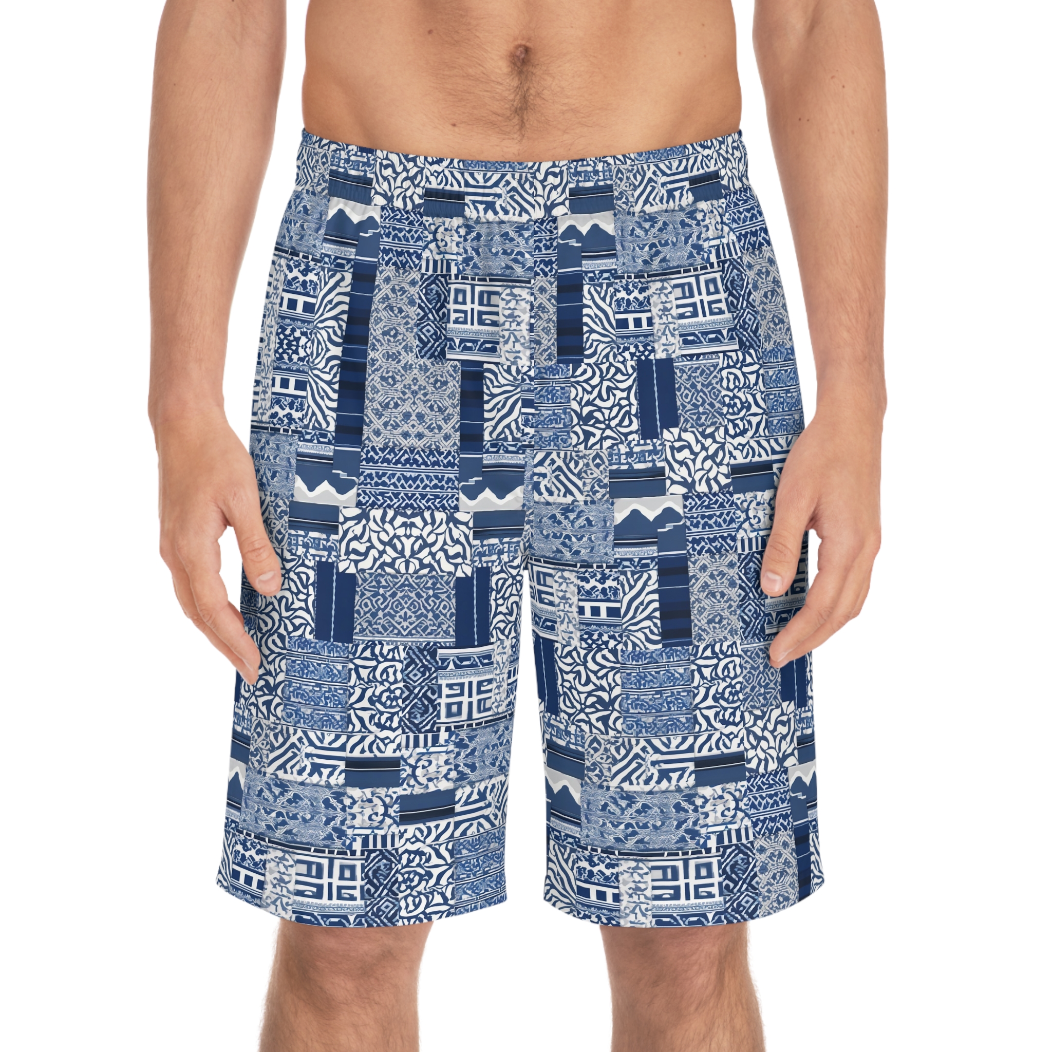 Add a personalized touch to your wardrobe with these custom board shorts for men. Made with light, breathable polyester fabric, these shorts feature 2 side pockets for daily convenience, an elastic waistband, and a black drawstring rope.
