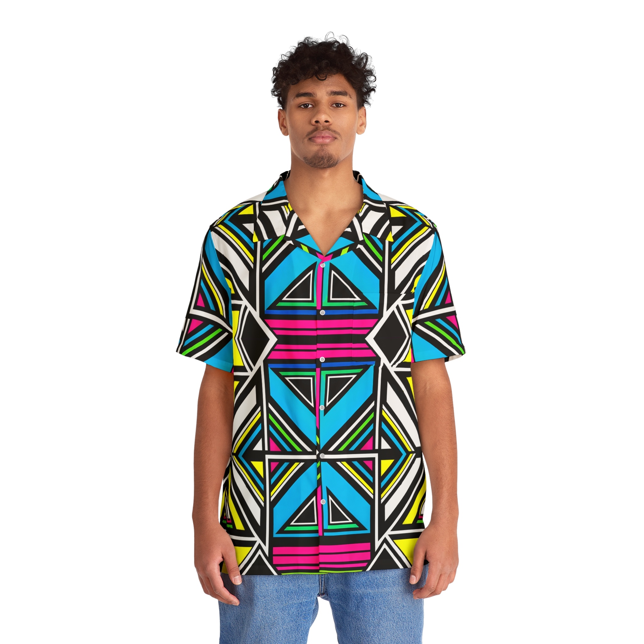 Nothing says “I love summer” like a Hawaiian shirt, and now, you can make this iconic garment even better by adding your own art to it. Made to have a boxy fit and a notch lapel collar that are perfect for any laidback scenario, these shirts come with a handy chest pocket and a 95% polyester and 5% spandex fabric for silky comfort. Choose between black or white buttons & customize it to taste.