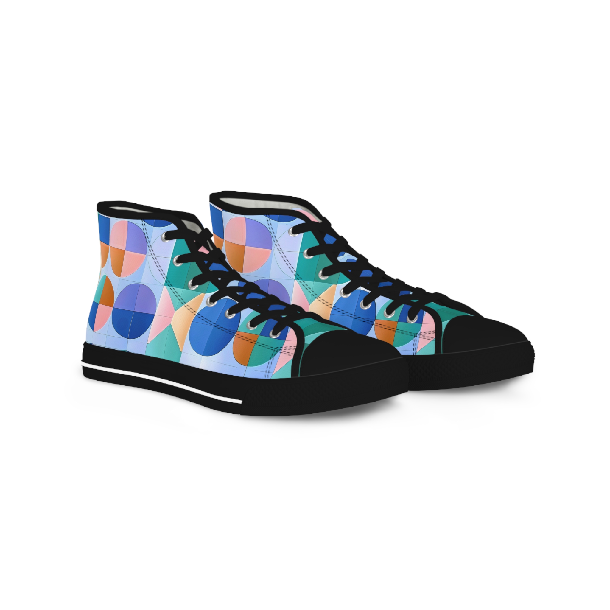 Made with breathable polyester canvas and featuring hi-poly deodorant memory foam insoles, these high top sneakers for men bear all the marks of an awesome shoe. Choose between black or white sole and laces, and enjoy the silver metal eyelets along with the lace-up closure. Add your designs and bring a bespoke staple to life.